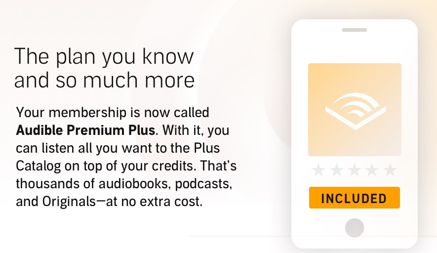 Prior to offering Audible Stories, Audible started offering its members free titles each month. Generally, they had 6 or 7 titles available, of which you could select 3 each month to add to your library for free. It was another great way to add titles to one’s library that might otherwise have been overlooked in an effort to save the all-important monthly credit. Then, Audible did something I could have never even imagined. They created the Audible Plus Catalog which gives members access to thousands of audiobooks, Audible originals and podcasts for no extra charge.