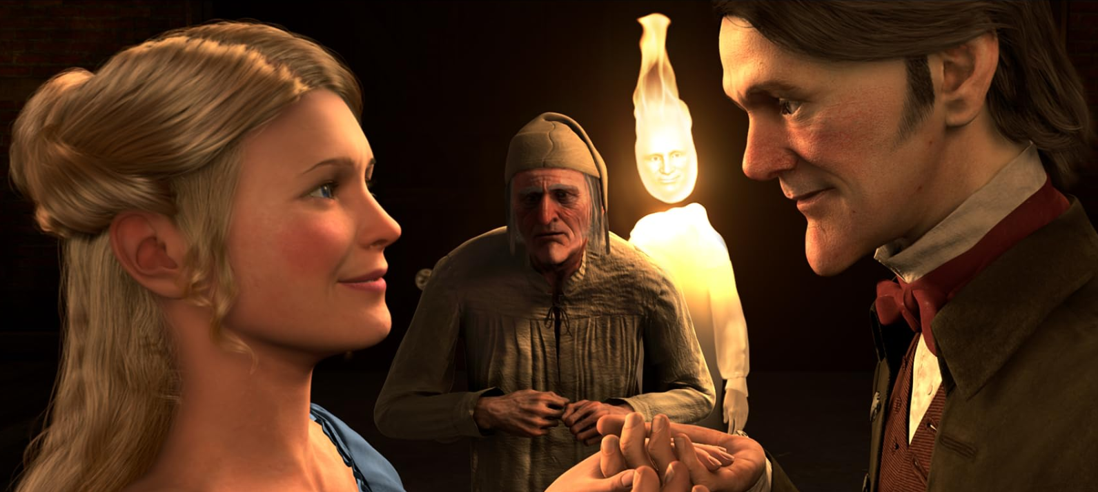 Ebeneezer Scrooge’s appearance in this film is identical to the marionette version seen in Zemeckis’ The Polar Express in 2004.