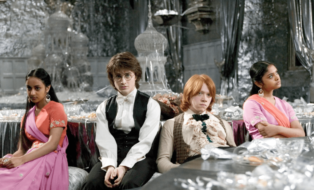 My favorite scene…The Yule Ball scenes are not only my favorite but the part of the film I look forward to the most every time I watch it. In some ways, it completely reminds me of some cringe-worthy junior and senior high school dances I attended with some kids having the time of their lives and others about as miserable as you can get. I mean, even poor Neville Longbottom (Matthew Lewis) is living his best life while others, like Ron & Harry sit aside, miserably, watching Neville dance the night away.
