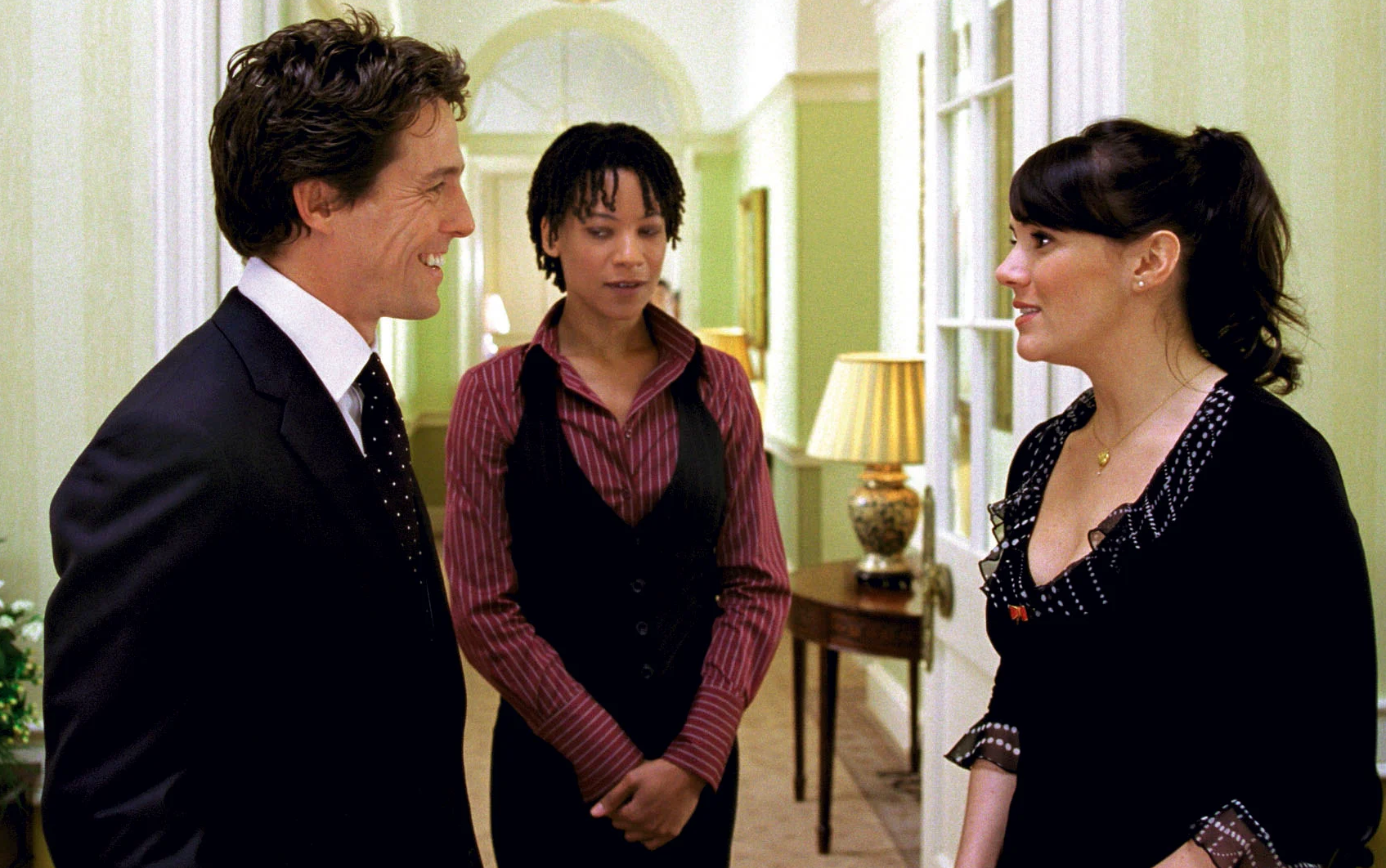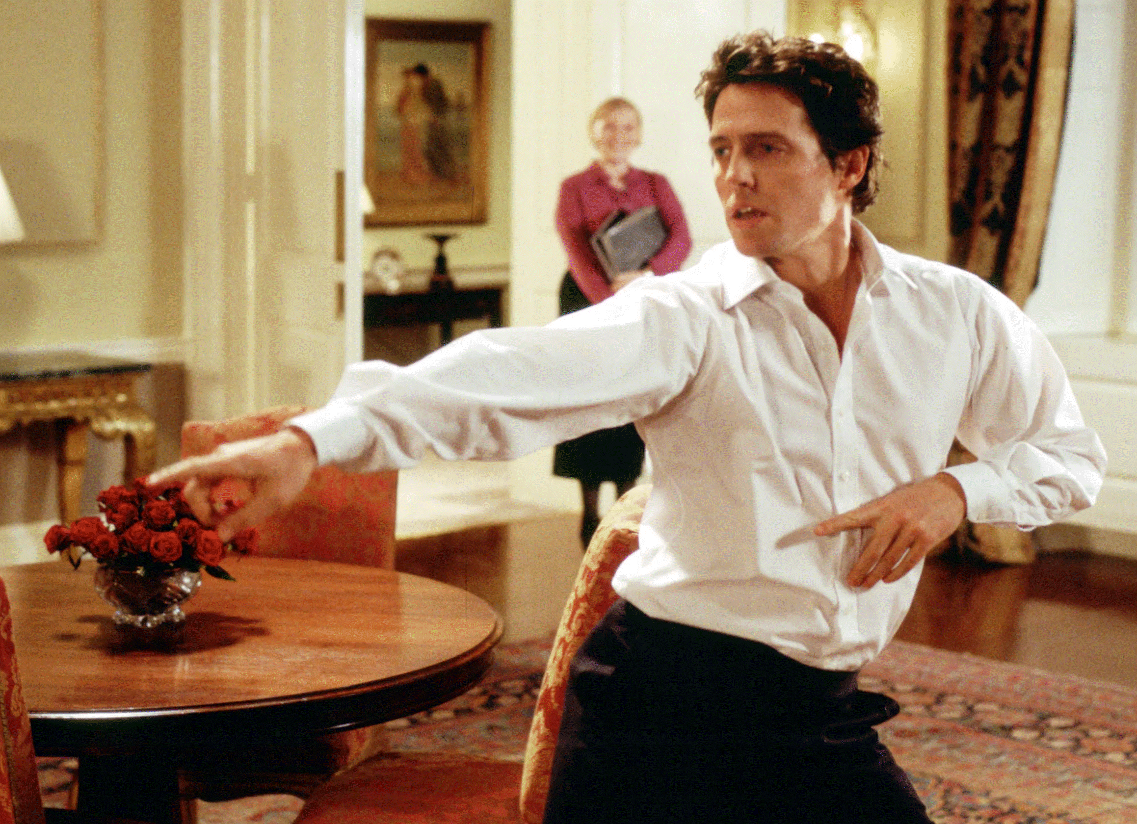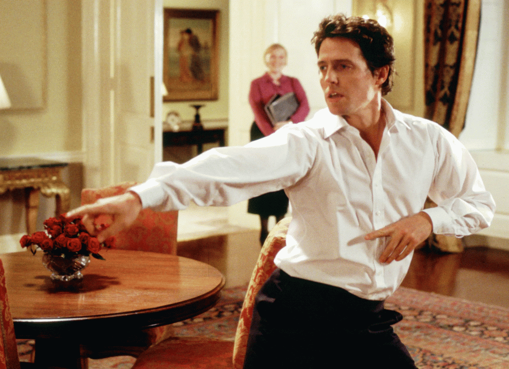 Next, the more uplifting scene – when David (Hugh Grant), the new Prime Minister, just can’t resist the music and begins singing and dancing his way around 10 Downing Street to The Pointer Sister’s hit song “Jump”. Being the curmudgeon that he is in real life, Grant absolutely hated filming that scene and considered it beneath how a real Prime Minster would behave. I, for one, hope that Prime Minister’s, and other people in high office, have those moments of levity where they can just be real and let go a little bit. Despite Grant’s disdain for the scene, it has become one of the most famous scenes in film history and is often hilariously duplicated by many. Just check out this one (of thousands) of videos on YouTube. It makes it all the funnier, to me, that Hugh Grant hated filming this iconic scene.