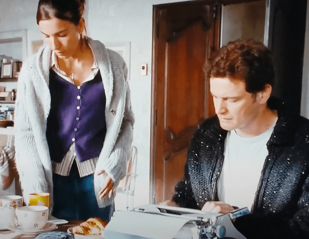 - Colin Firth as Jamie, who’s girlfriend, played by Sienna Guillory, recently crushed his heart, causing him to flee London to work on his book in France where he meets the Portuguese housekeeper, Aurelia, played by Lucia Moniz, who will change his life.