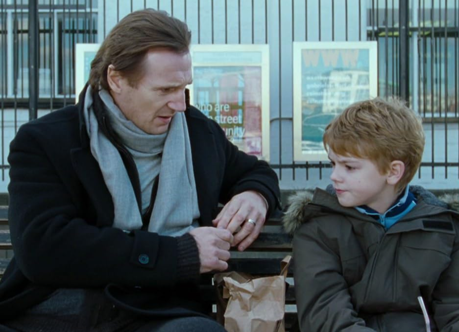 - Liam Neeson as Daniel, grieving husband, friend of Karen’s and stepfather to Sam, played by Thomas Brodie-Sangster, who is desperately in love with his American classmate Joanna Anderson, played by Olivia Olson.