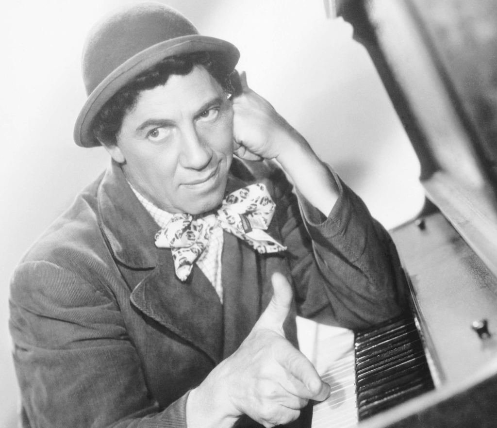 The eldest Marx brother, Chico, was born on March 22, 1887, in Manhattan. A talented pianist, he originally started playing with only his right hand and faked playing with his left. Although he did take lessons, he was largely self-taught and, from a young age, took jobs playing piano to earn money for the family. Chico’s on-stage persona took the form of a charming, crafty, but not well-educated Italian man who was often trying to outwit Groucho while conspiring with Harpo.