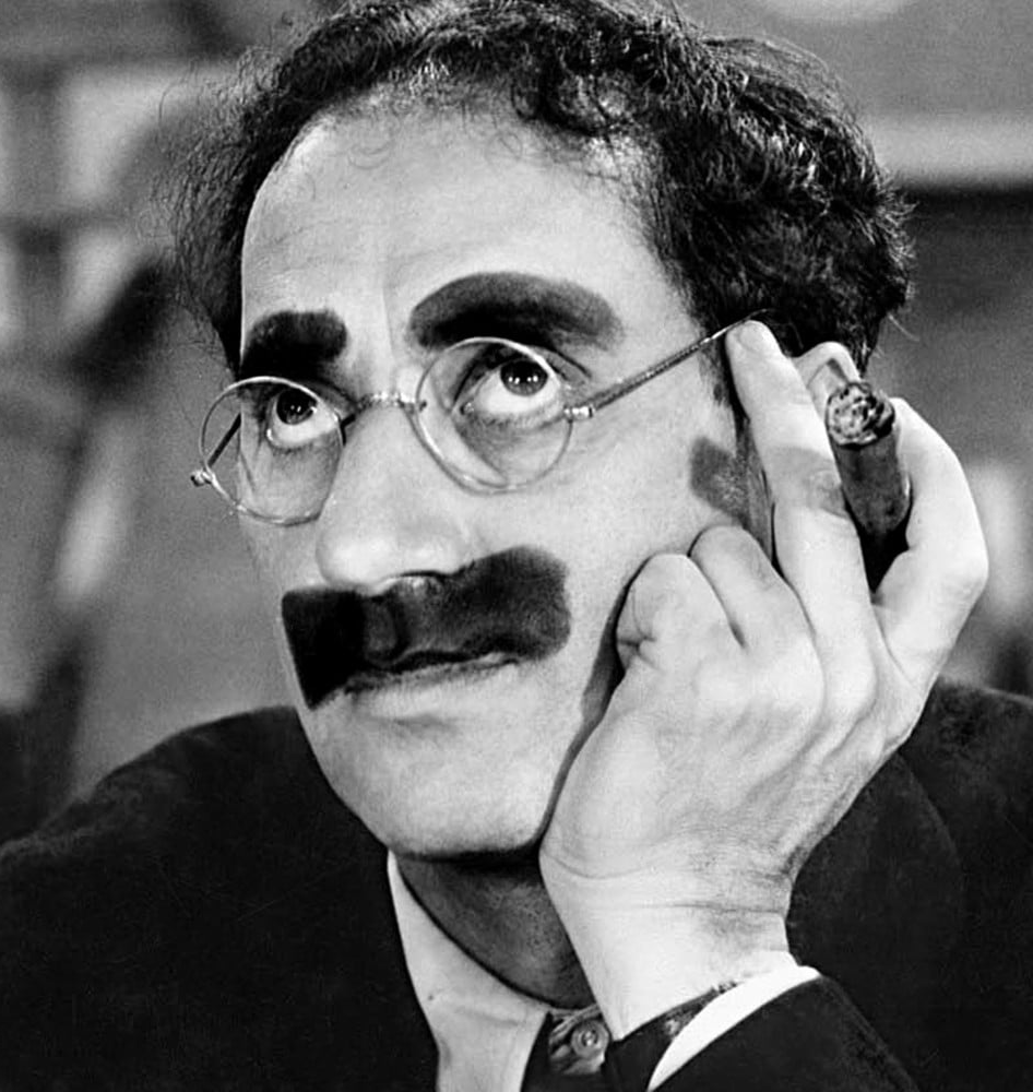 His trademark greasepaint mustache and eyebrows came about before a vaudeville performance in the 1920s when he didn’t have enough time to apply the glue-on version, which he wasn’t a fan of applying and removing in any case.