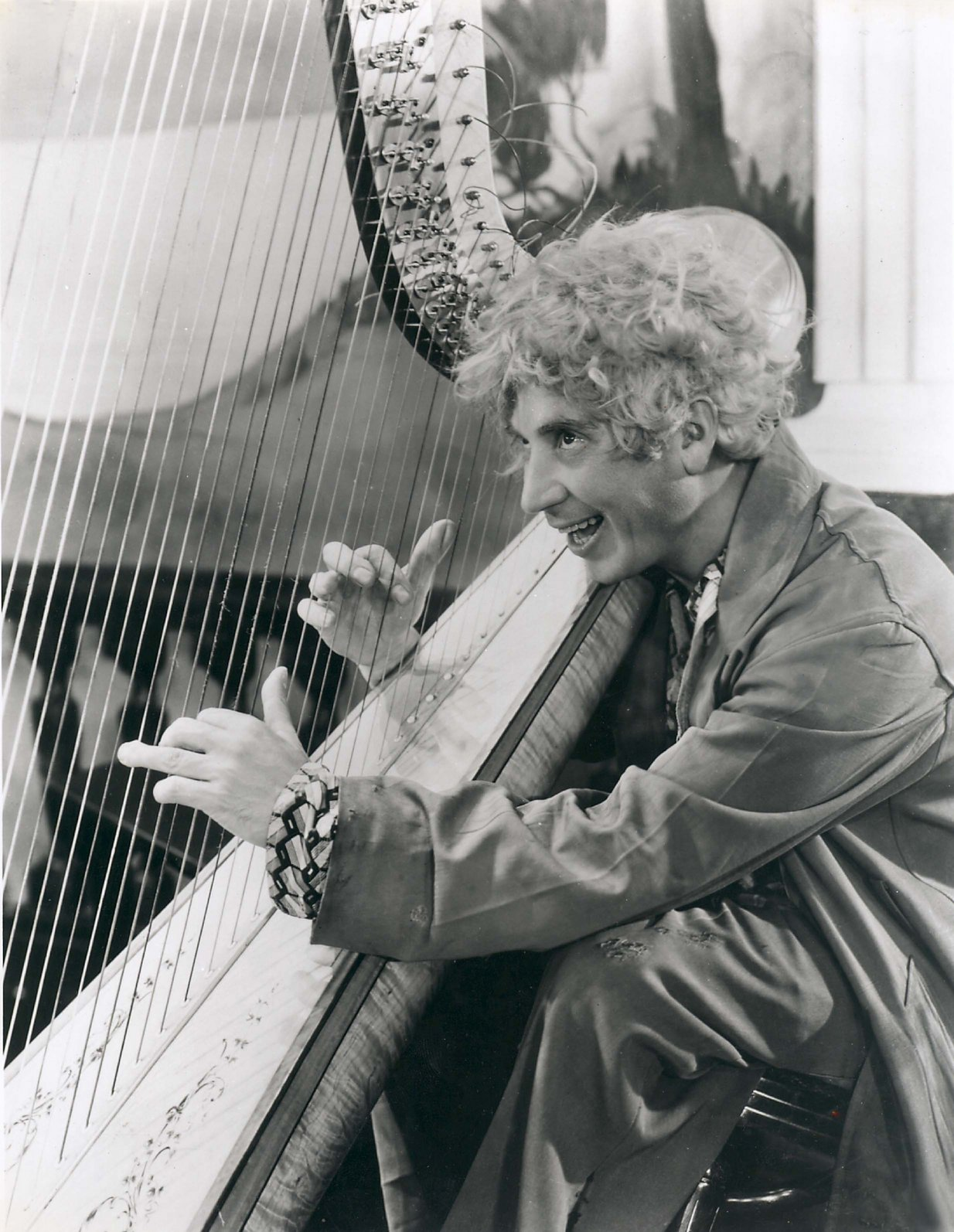 Harpo, of course, is also well-known as a harp player and, despite his musical talent, never learned to read or write music. In fact, it is said that he learned how to hold a harp based on a picture he once saw at a five-and-dime store and often paid top musicians to help teach him how to properly play the instrument. His character also became known for his prop-laden trench coat which seemed to have an endless supply of sight gags stored in the pockets.